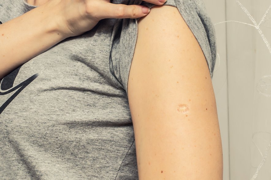 — После проведения прививки БЦЖ на наружной поверхности левого плеча остается так называемый «поствакцинальный знак», или рубчик. Он свидетельствует о том, что в организме состоялся вакцинальный процесс и человек защищен от микобактерии. Но величина рубчика зависит от индивидуальных свойств кожи. И даже полное отсутствие поствакцинального знака ни в коей мере не влияет на степень защищенности организма.