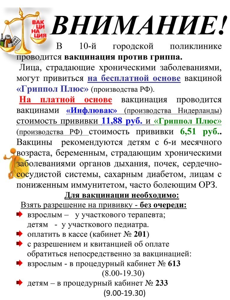 Вакцинация от гриппа вакциной «Инфлювак» (Нидерланды) всего 1000 рублей, включая осмотр врача!