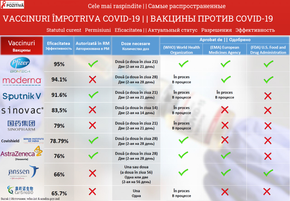 — Ред.). Кроме этого препарата, молдавское Национальное агентство по лекарствам зарегистрировало 26 февраля вакцины BionTech/Pfizer и «Спутник V».