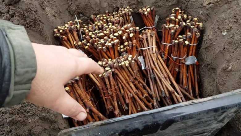 Черенки нарезаются из вызревшей, светло коричневой лозы от побегов, выросших на плодовых ветвях.