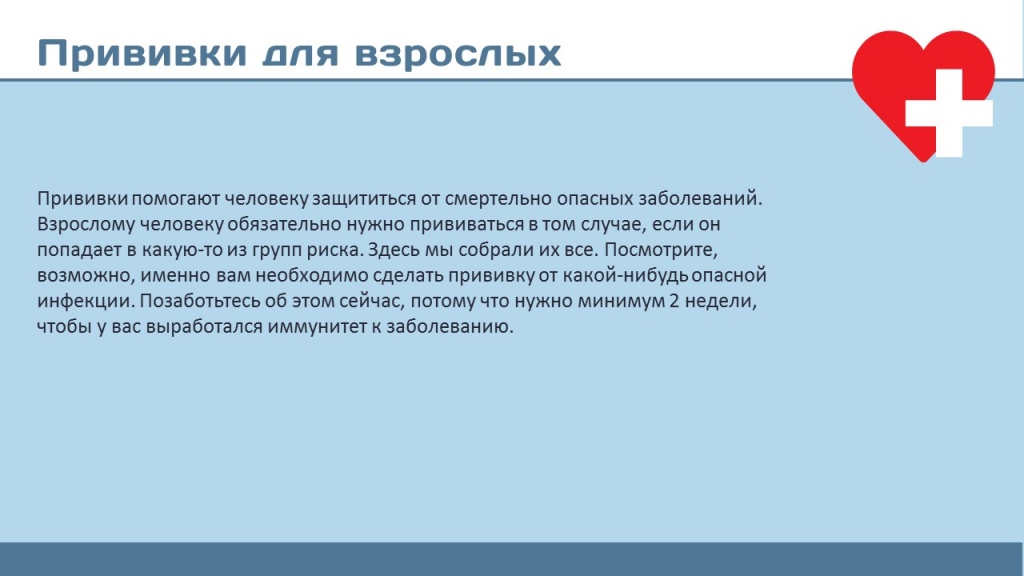 Прививка — это для детей! После окончания школы мы полностью забываем о вакцинации. Никто нам больше не напоминает о прививках. А на самом деле, взрослые люди также должны вакцинироваться.