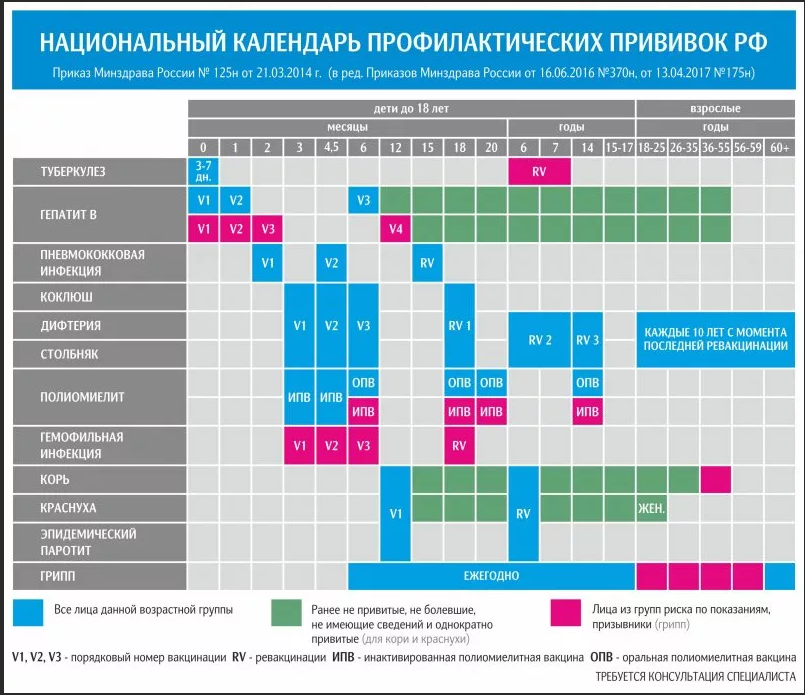 Я нашла в интернете разные графики прививок, их три относительно полиомиелита. Один на четыре ревакцинации, третья в 6-7 лет и четвертая в 14 лет, два на три «дозы» — в одном третья ревакцинация в 6-7 лет, в другом — в 14.